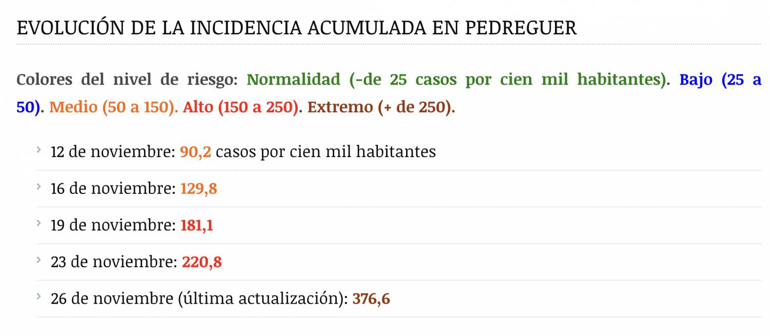| В Педригере (городок поблизости от Дении) уровень выявленных «инфицированных» за последние 2 недели составил 376,6 на 100 тысяч. Что по нормативам относит его к территориям «красной» зоны серьезного эпидемиологического риска. Показатель по всей Испании сейчас 325. Население Педрегера - менее 10 тысяч, поэтому каждый случай обнаружения здорово портит статистику.